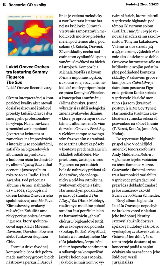 NEW ALBUM OUT !!! “THE SUN” LUKAS ORAVEC ORCHESTRA !!!